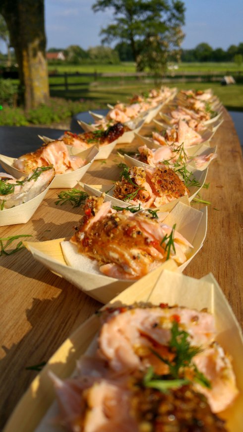 We hebben er dit jaar een nieuw concept aan toegevoegd en dat is de BBQ in tapas-vorm. Dit zijn kleine gerechtjes die wij op de BBQ bereiden (live cooking ) en uitserveren. Wat kun je zoal verwachten van deze tapas. Eigengemaakte Moink bals, gevuld wrapje met een vlees-groente vulling, warmgerookte zalm op een panne tramezettino, Taco mini tubes met langzaam gegaard rundvlees..enz. We krijgen veel leuke reacties op dit concept, wat de mensen zo trekt hierin is dat het op een rustige en gezellige manier bereid en geserveerd wordt. Het feest wat men geeft, geeft men gezellig rondom onze setting die sfeervol wordt ingericht en aangekleed.